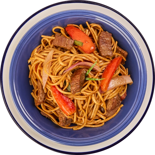 - En el mismo wok, saltear las verduras. Primero con la cebolla morada hasta que tome color y reservar. Luego saltea el zucchini y los pimentones. Reservamos.