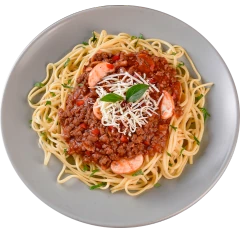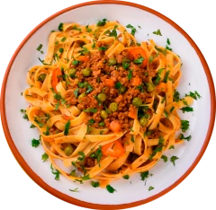 - Sirve una base de Spaghetti Don Vittorio, cubre con el guiso caliente y decora con perejil fresco al gusto.