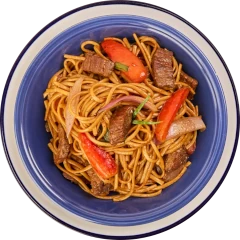 - En el mismo wok, saltear las verduras. Primero con la cebolla morada hasta que tome color y reservar. Luego saltea el zucchini y los pimentones. Reservamos.